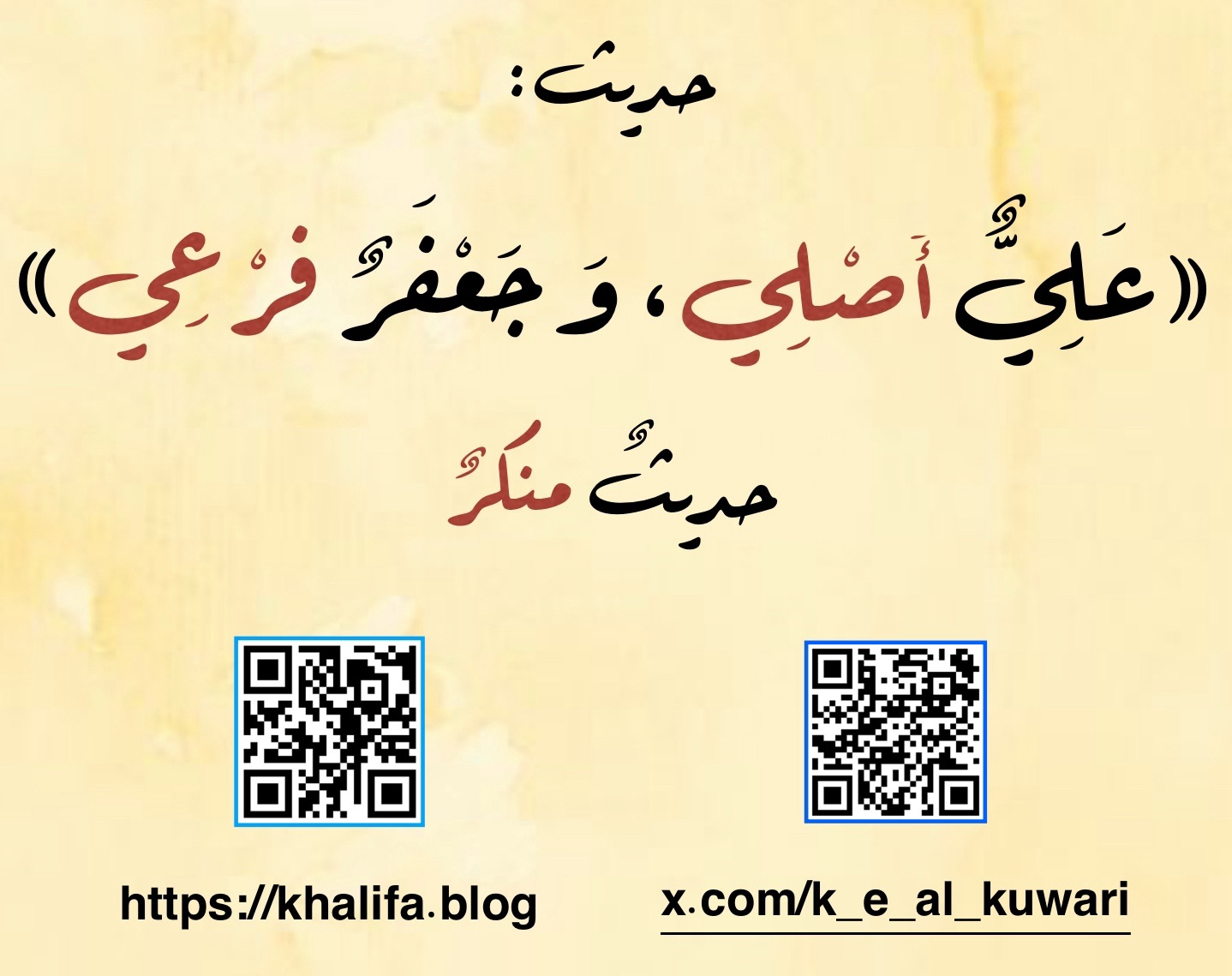 تخريج حديث: عليّ أصلي، وجعفر فرعي