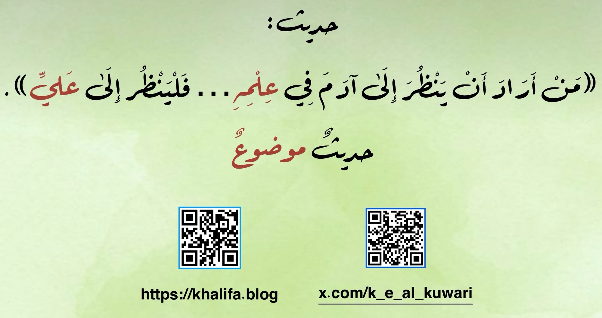 تخريج حديث: من أراد أن ينظر إلى آدم في علمه، وإلى نوح في فهمه، … فلينظر إلى علي بن ابي طالب