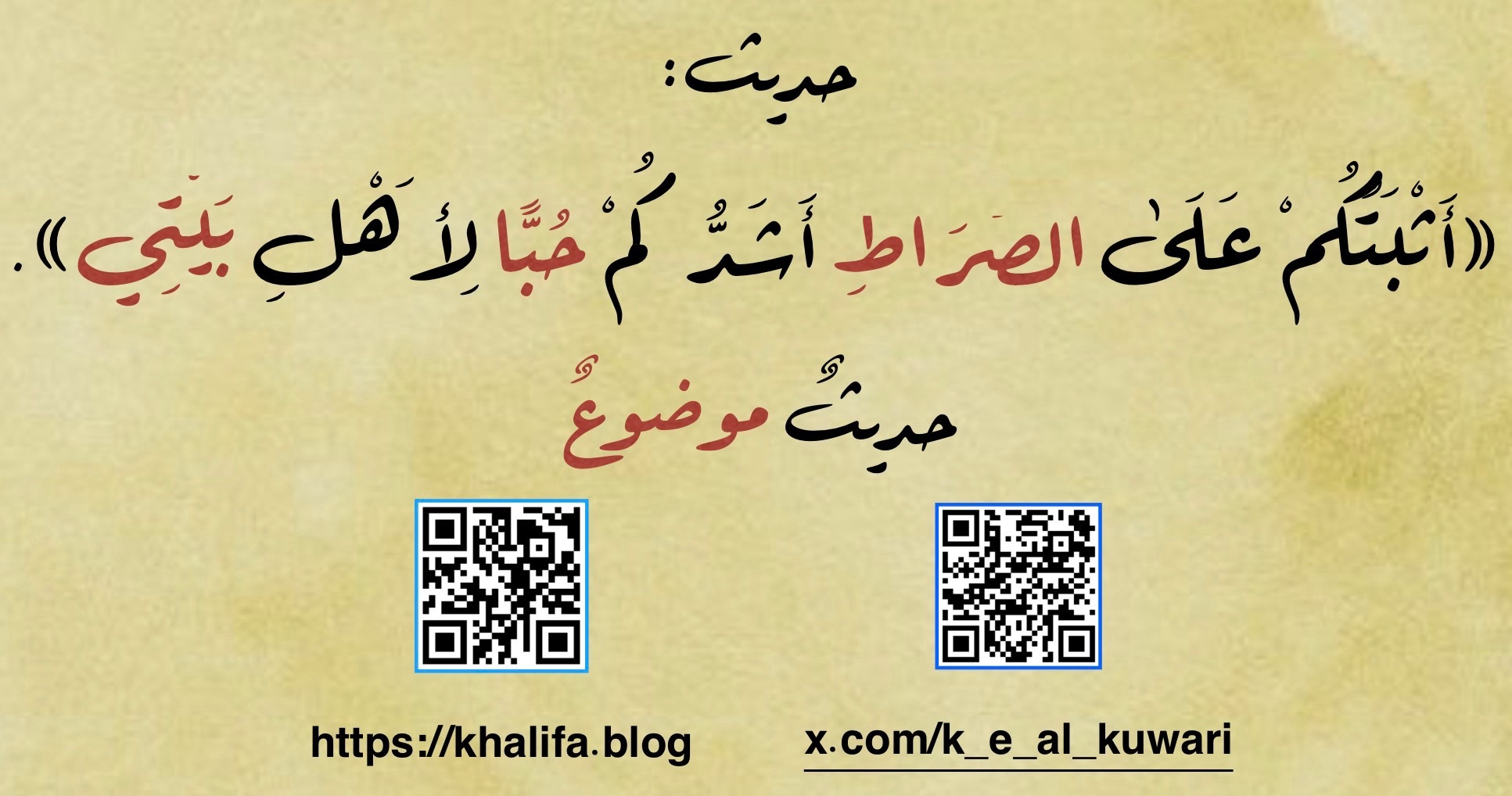 تخريج حديث: « أثبتكم على الصراط أشدكم حبا لأهلي بيتي وأصحابي »