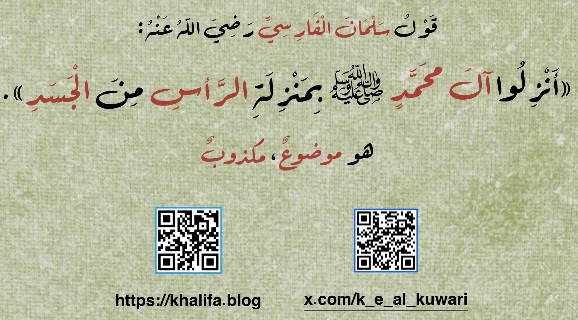 تخريج قول سلمان الفارسيّ رضي الله عنه: أنزلوا آل محمد -صلى الله عليه وسلم- بمنزلة الرأس من الجسد